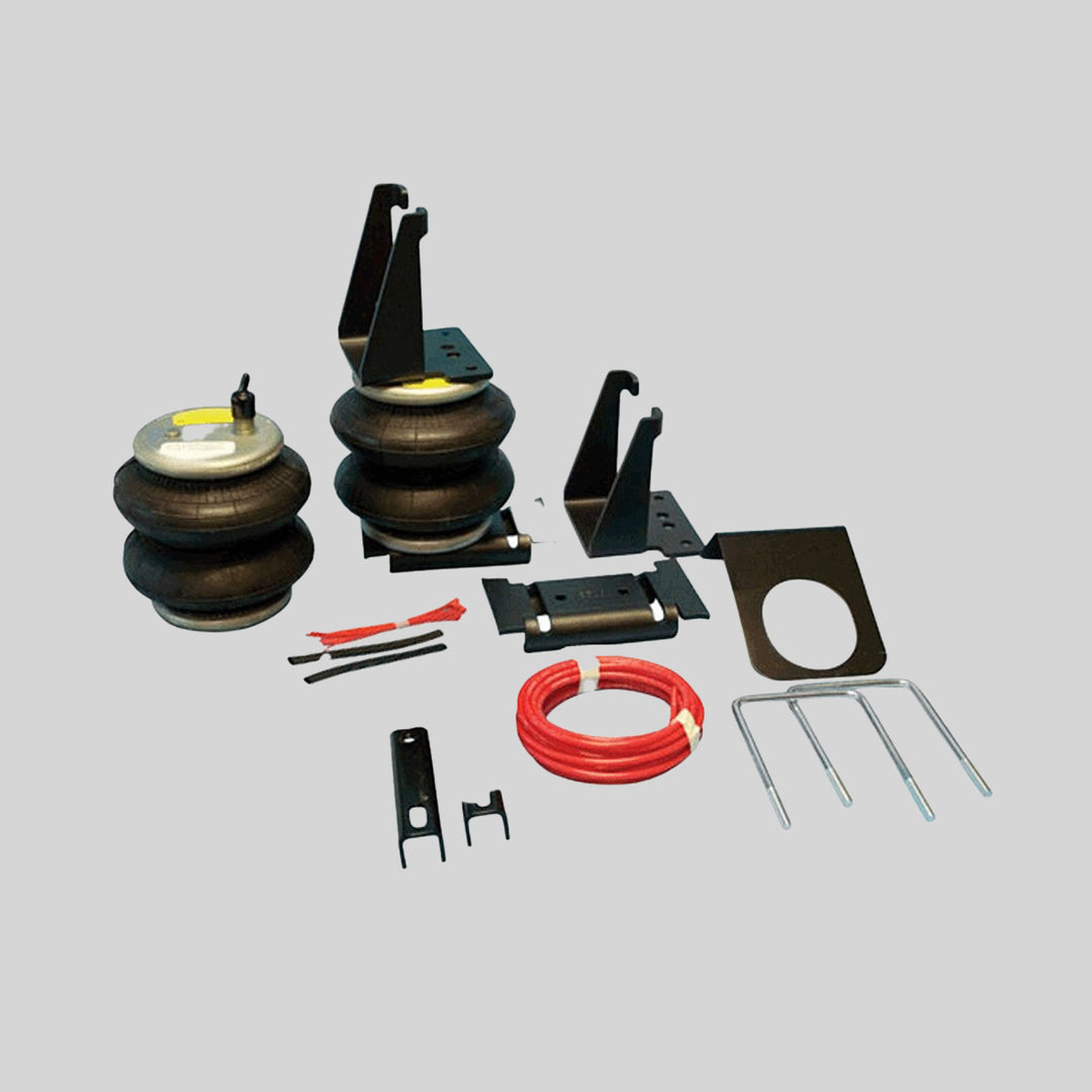 Installed between the vehicle’s frame and suspension to provide variable load support by adjusting the air pressure. By reducing inter-leaf friction, Ride-Rite air springs are capable of 3,200 to 5,000 pounds of load leveling capacity.