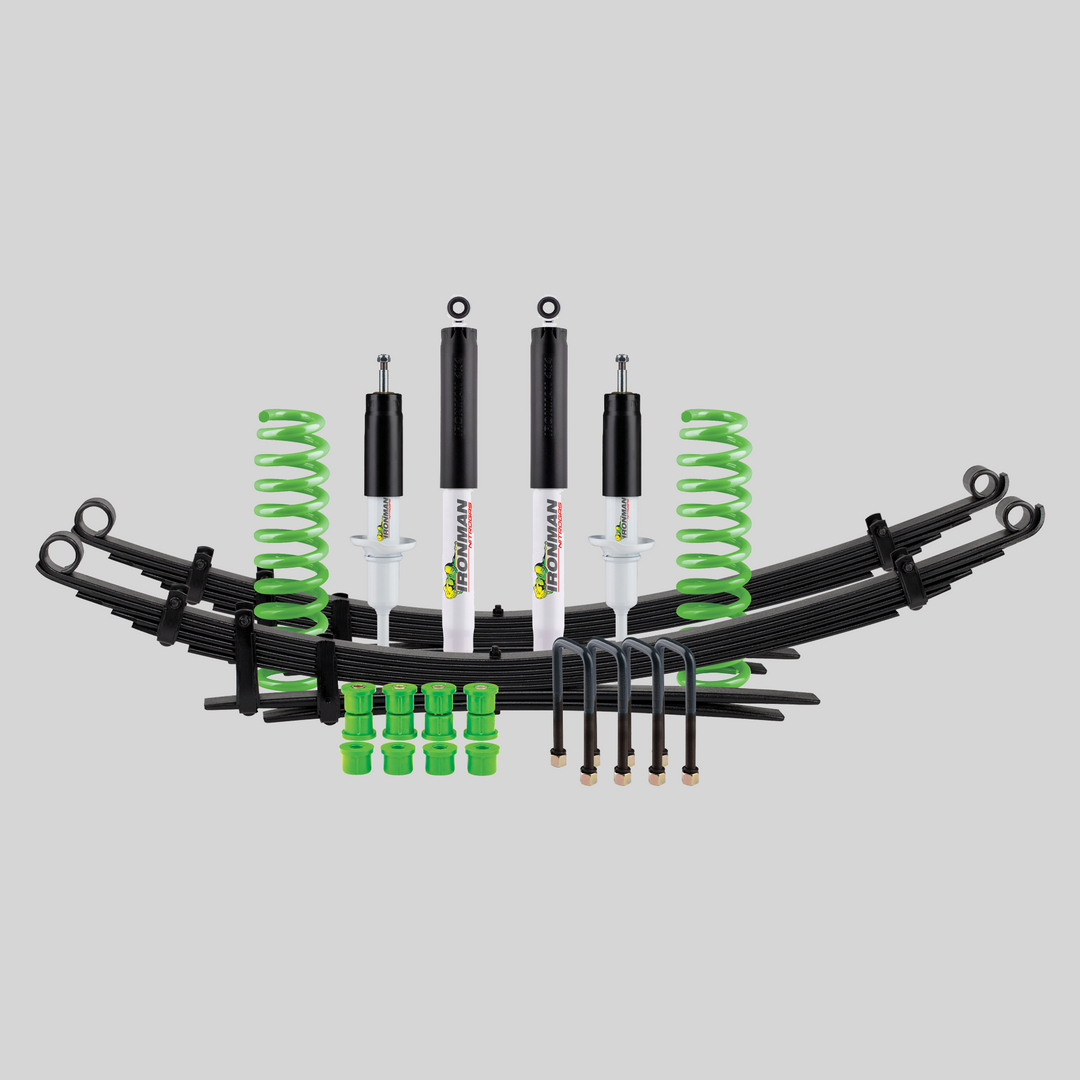Whether you are looking for more lift, a smoother ride or better off-road performance, the Ironman 4×4 suspension range has you covered.Tailored especially for Aussie conditions, our range not only stands up to our rugged terrains but also caters to those towing or carrying heavy loads.